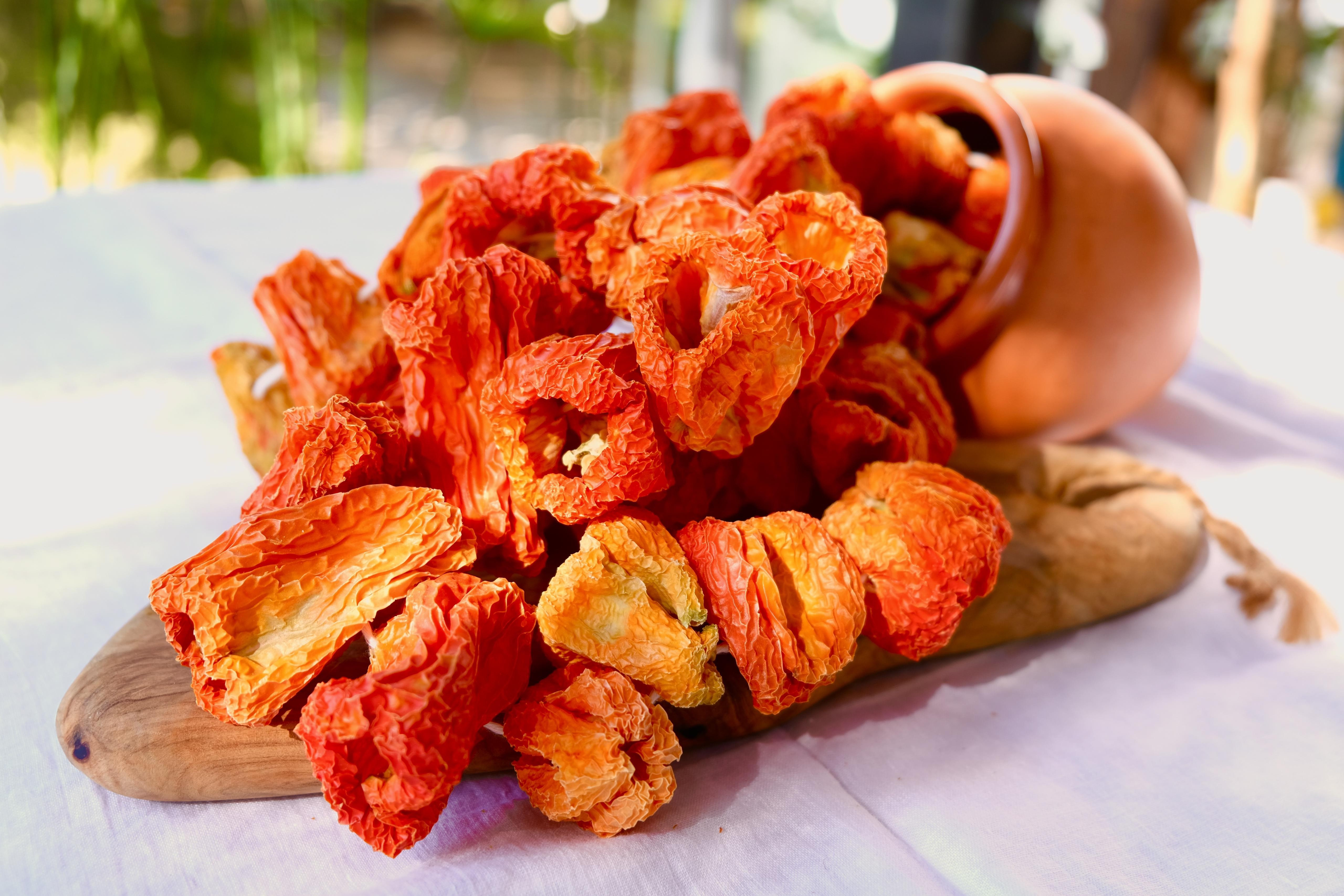 Omca Köy Ürünleri'nin kuru dolmalık biberleri, taze biberlerin içi temizlenip güneşte kurutulmasıyla elde edilir. Dolma yapımında kullanmak için ideal olan bu biberler, yemeklerinize hem doğal bir lezzet hem de mis gibi köy havası katar.